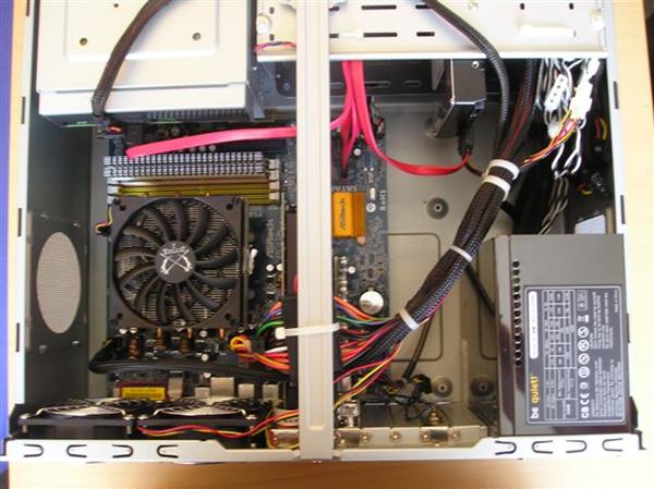 Bei allen Vergleichen war kein Modell dabei, das in Punkto Technik und Ausstattung und Preis meinen Vorstellungen entsprach. Viele sind nur auf einige Funktionen ausgerichtet, eine Unterstützung von Kabel TV bzw. ein Dualbetrieb sind nicht oder nur Eingeschränkt möglich. Ich habe folgende Optionen eingebunden : Kabelfernsehen, DVB-T, Internetfernsehen, Videotext, Festplattenrecorder, Radio, ITunes also Internetradio, Podcasts, Musik etc. Archive lokal und über Netzwerk wie Musik, Fotos, Videos, Filme und DVD`s. Außerdem den Lokalen Wetterbericht und das Internet. Für ein BlueRay-Laufwerk ist noch ein freier 5 1/2" Einschub vorhanden, dieser wird zusammen mit einer GeForce HDTV passiv gekühlten Grafikkarte zu einem späterem Zeitpunkt bestückt. Ich denke zum Jahresende fallen die Preise für diese Laufwerke noch um einiges. Wie auch schon in den anderen Projekten kann ich via VNC das Media - Center von jedem PC oder Laptop aus bedienen. Ich muss zum Aufnehmen meiner Lieblingssendung nicht in das Wohnzimmer rennen oder kann die Aufnahmeprogrammierung vom Arbeitszimmer aus tätigen. Linux MCE auf der Basis von Ubuntu 6.10 als Betriebssystem bietet echt gute Optionen. Aber bis man das am laufen hat, geht echt Zeit und Nerven drauf. Ich behalte das aber als Herausforderung im Auge. So habe ich als schnellere Methode ein Windows XP Professional verwendet. Bei der Mediacenter Edition fehlen zu viele Optionen. Ich bin auch mit der NeroHome Vers. 8.0 nicht zufrieden. Das muss nur zum Brennen her halten. Ich habe mir zu den einzelnen Optionen die besten Anwendungsprogramme ausgesucht und diese auf einer Anwendungsoberfläche im HTML Format mit Microsoft FrontPage zusammen gefasst. Die Bedienung erfolgt über die zum Gehäuse zugehörige Fernbedienung. Die Software hat auch schon für viele Anwendungsprogramme Voreinstellungen wie zB.: ITunes. Die Logitech diNovo Edge Tastatur ermöglicht außerdem ein komfortables Bedienen und entspanntes Surfen im Web. Das edle Design und die super Handhabung geben einem Wohnzimmer - PC den eleganten I - Punkt. Dank der AMD Athlon X2 Dual CPU BE-2350 mit nur 45 Watt ist ein Flüsterlüfterbetrieb kein Problem. Zusammen mit dem Netzteil by Quit und den beiden 80mm Gehäuselüftern eine leise und gut temperierte Sache.