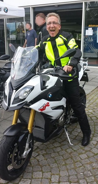 | ..... wo die Liebe hinfällt Nach einer weiteren Probefahrt bei strömendem Regen, wo man den Regenmodus so richtig testen konnte und einer Tagestour auf einem Mietmotorrad war die Entscheidung gefallen. Mit einigen "Behinderungs bzw. Altersgerechten" Modifikationen habe ich mir mein Wunschbike zusammen gestellt und bestellt. Neben den ganzen angebotenen Paketen hat sich die Entscheidung für einen Wunderlich Lenkerumbau gelohnt. Zusammen mit der Wunderlich Navi Erhöhung hat man für lange Touren eine entspannte Sitzhaltung. Meiner Honda trauere ich schon etwas hinterher, zumal das Honda Team immer eine Super Arbeit geleistet hat und mich das Bike nie im Stich gelassen hat. | ![]() |